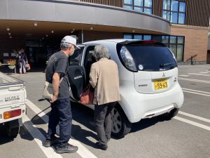 当団体が2016年度より取組みを始めた「益城町お出かけ支援サービス」は、2023年度より、それまでボランティアとして参加いただいていた益城町内の元気なシニアが設立した「ましきおでかけ支援隊」に主体を移しました。